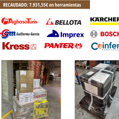 Se han ayudado a 39 familias con un importe total recaudado de 13.284€. Adjunt imagen con logos de empresas colaboradoras e imagen de una de las ferreterías de PALMA que fue más activa en esta campaña de ayuda a damnificados.